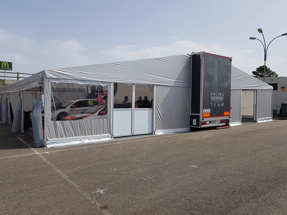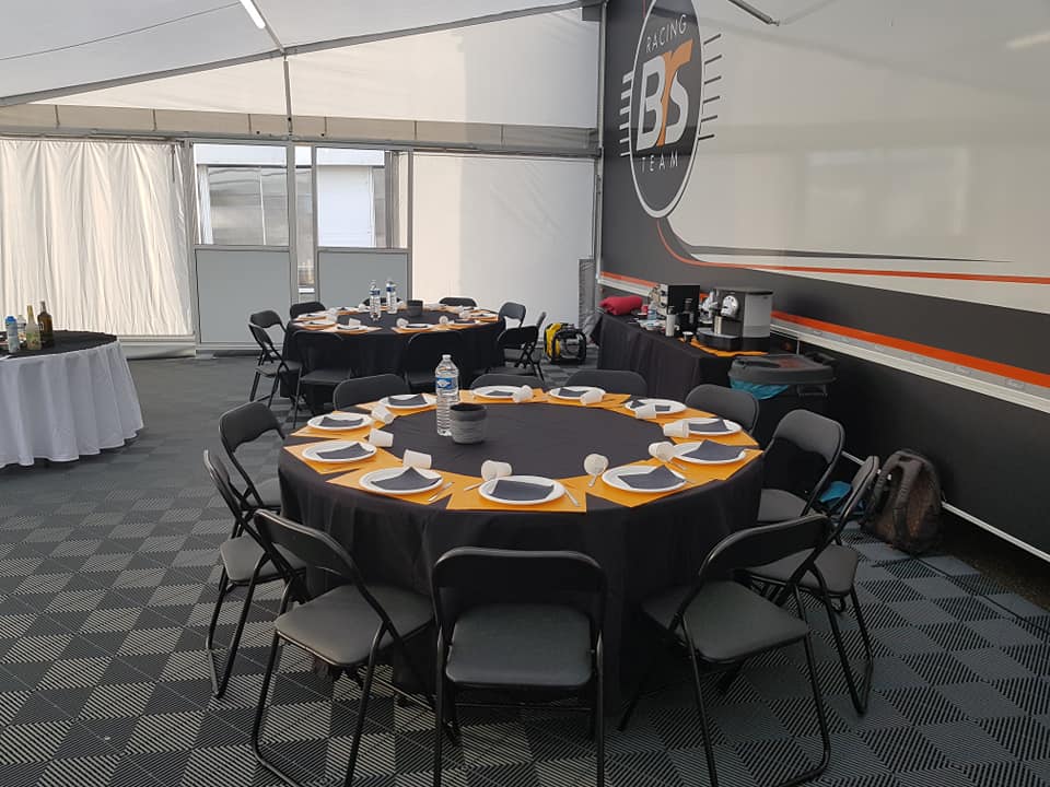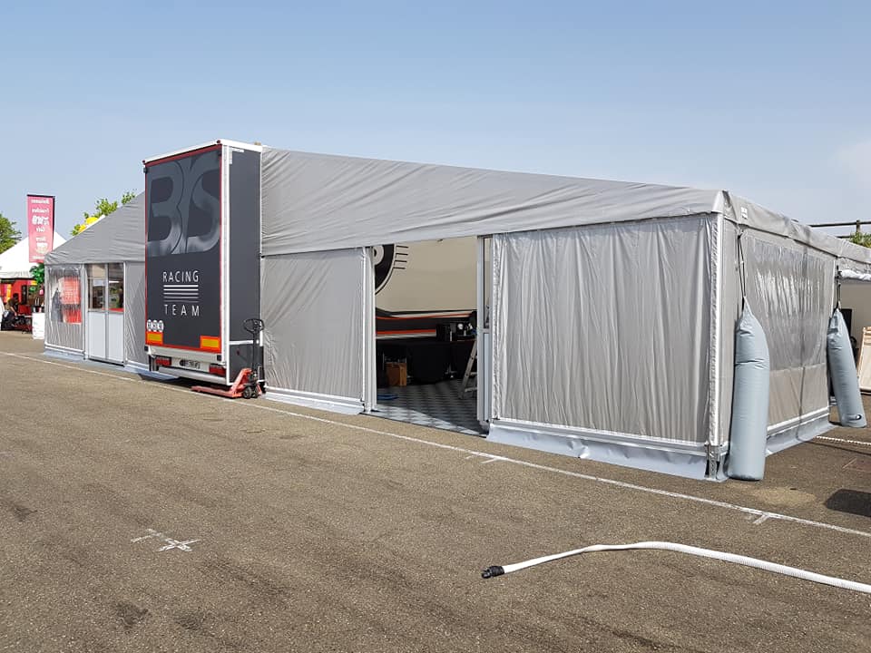 200 m2 de surface couverte et modulable entre Stand Technique et Surface d’Accueil pour les invités et le team.